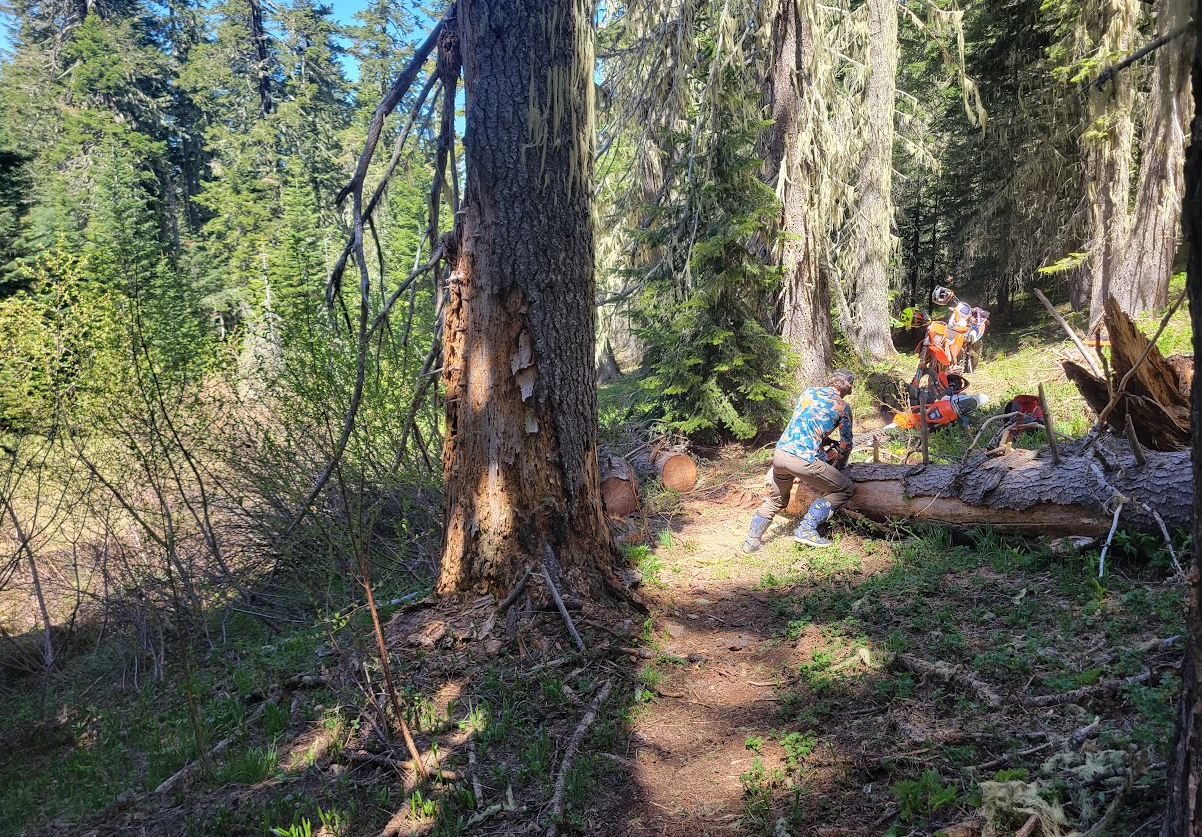 Deciding if trail work is more fun than riding them is tough, but it's a team effort! We aim to balance riding with sawing.